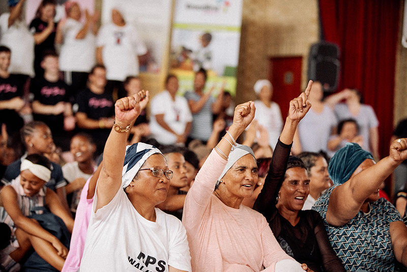 It’s time to leave the school Hall. We get in the car, we lock the doors. Before we leave Lavender Hill behind us, and seek the safety of our privileged comfort in the city close to the mountains, I take one more look around, as we pass people walking, laughing, running in the streets, the rigid housing-blocks in the background, little shack-shops decorating the grey of the streets. As different as our lives may be, they aren’t all that different. We women hold our communities together, and we must stand together now and always. The violence women face – mostly in poor communities – is a challenge of our time and we will fight it, together. Feeling the spirit in the school Hall made me wander in my mind in awe. I am proud of being a woman and even more proud of standing with women. We shall rise and we shall Fight Back.
