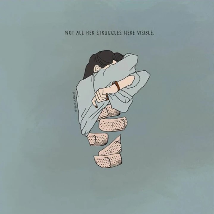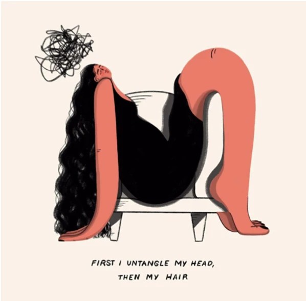 A more informative style of artwork is explored by Matilda, a Swedish based artist and mental health advocate. In her work, she explores several mental health conditions and successfully communicates to individuals with varying understanding of the different signs, symptoms and effects of mental health disorders. Whilst sharing her journey with mental health, Matilda opens up and reveals the thoughts and emotions she experiences as a result of her mental health disorder(s). As a creative, she is able to utilise illustration as a form of communication with her 491k followers, and as such, provides an unfiltered, realistic view of the way in which mental health sufferers act, think and perceive events.