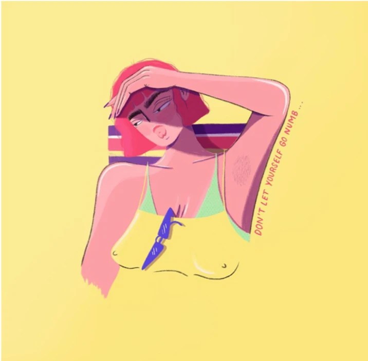 In Pham’s ‘Psychology Series’, the Vietnamese artist, illustrates themes of depression, isolation and love to expose the reality and complexity of the human psyche. In a very alternative way, Camelia uses her illustration to incite conversation about the traditionally taboo subject of mental health. Although for some quite intrusive, Pham successfully exposes how imposing thoughts can represent a deeper, more serious psychological issue- her use of colour and negative space is visually arresting and prompts individuals to appreciate the composition and content of the artwork.