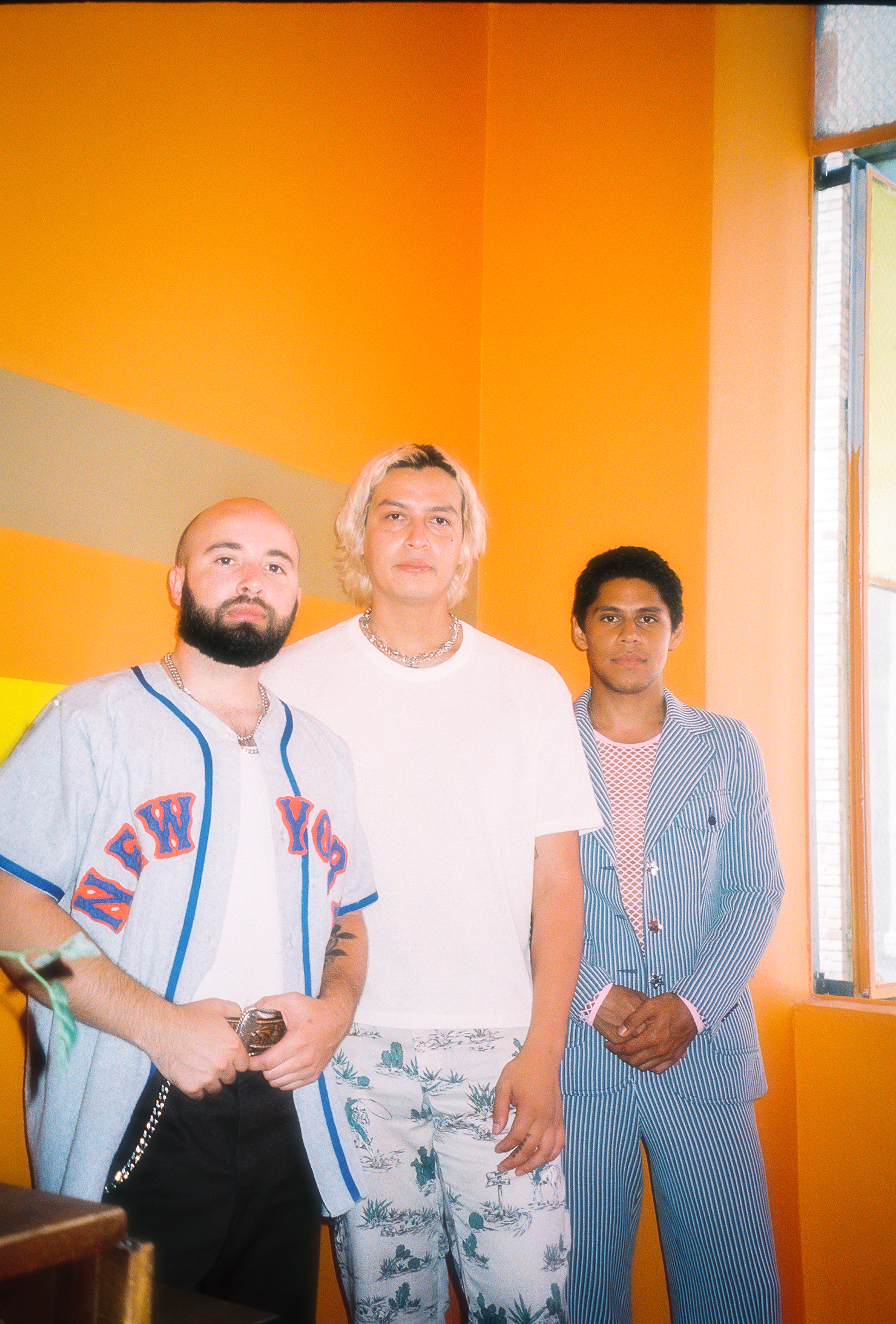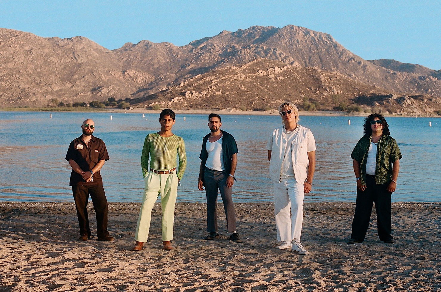It’s a cold and dark evening in London when I sit down to talk with the three founding members of LA’s hottest indie band, Inner Wave. It’s lunchtime in LA, and as they pop up on my screen one by one, I can feel a burst of symbolic sunshine immediately. Pablo Soleto (guitar, vocals), Jean Pierre Narvaez (bass, vocals), and Elijah Trujillo (keys, guitar) have known each other since their teenage years and have been making music together since then. Completing the band are Luis Portillo (drums) and Jose Cruz (keys), who joined the band in later years. Pablo, who is the band’s main vocalist, calls from a studio they lovingly call ‘The Swamp.’ “We rehearse and record a lot of our music here,” he says proudly. Their music, which has millions of streams across various platforms, can be described as a mix of psych-pop and synthwave, and each album offers an eclectic mix of songs, showcasing the quintet’s exceptional artistic skills. The band is no stranger to jam-packed schedules. They regularly play at festivals, including Coachella, have just released their fourth album Apoptosis and are now on a US tour with UK band, Foals. On top of that, they have their own solo projects to tend to! It was, therefore, an absolute pleasure to be able to chat with them about their music, the dynamics of the band, and why the safety of their fans is paramount to them.