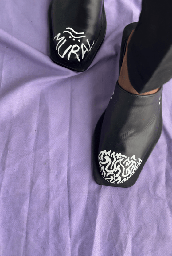 Note: Art director, Tobiloba Mustapha curates the mural and colour coating designs to the shoes.