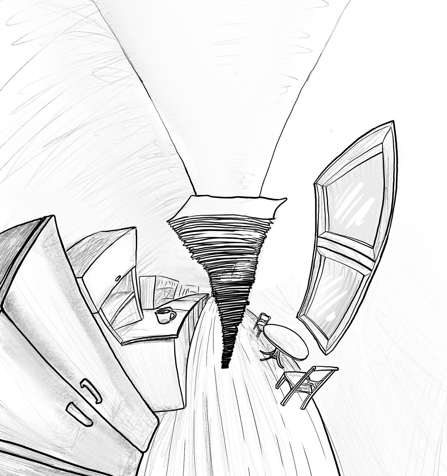Silently, inoffensively, Stina walked in. Lily and Abigail looked up. Stina, as always, looked perfect. Tall, Scandinavian, her blonde hair already washed and dried and blowing in the nonexistent wind. She beamed, and Lily and Abigail, despite themselves, felt warmer because of it. 22 minutes to deadline.