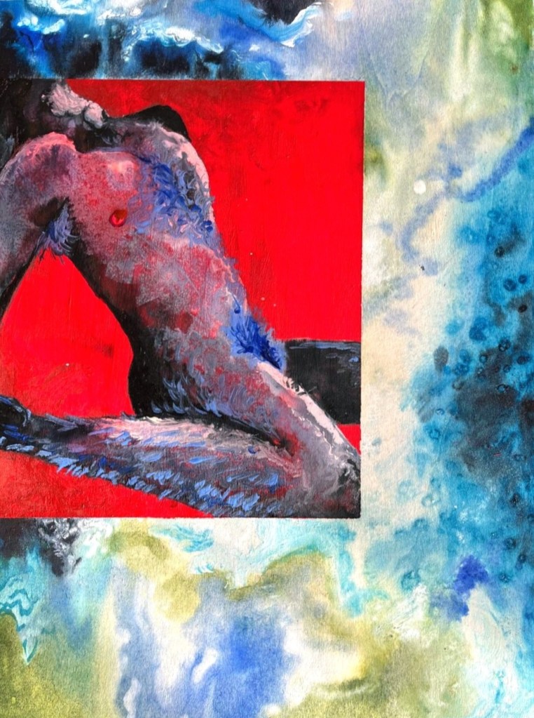 The work looks at a couple of different stories, different narratives from folklore and from mythology within the paintings, and it’s also an exploration of my own personal journey over the last few years. I define myself as queer, I’m intersex and non-binary and the work looks at the origin of the way we perceive these people, and ways in which we can view them.