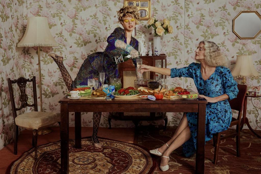 It’s not just the feline kind that seems bewitched by this intriguing woman. Kate Sutton’s inimitable set designs embody the most magical scenes out of seemingly ordinary and everyday things: Her favourite item to work with is a fried egg (“You can do anything with it, put glitter on it, stub a cigarette butt in it…”), which featured on the artwork that made me stop, stare, and drew me into Kate Sutton’s world. She designed the cover art for her close friend, singer-songwriter Charles, for his EP Gorgeous, Sick and Tired, released late last year. Playing on his love for a ‘proper’ cooked English breakfast, the design didn’t just see Charles seemingly contort himself and become part of the breakfast table; it also made the humble elements of a fry-up look like the press shoots for a Hollywood blockbuster.