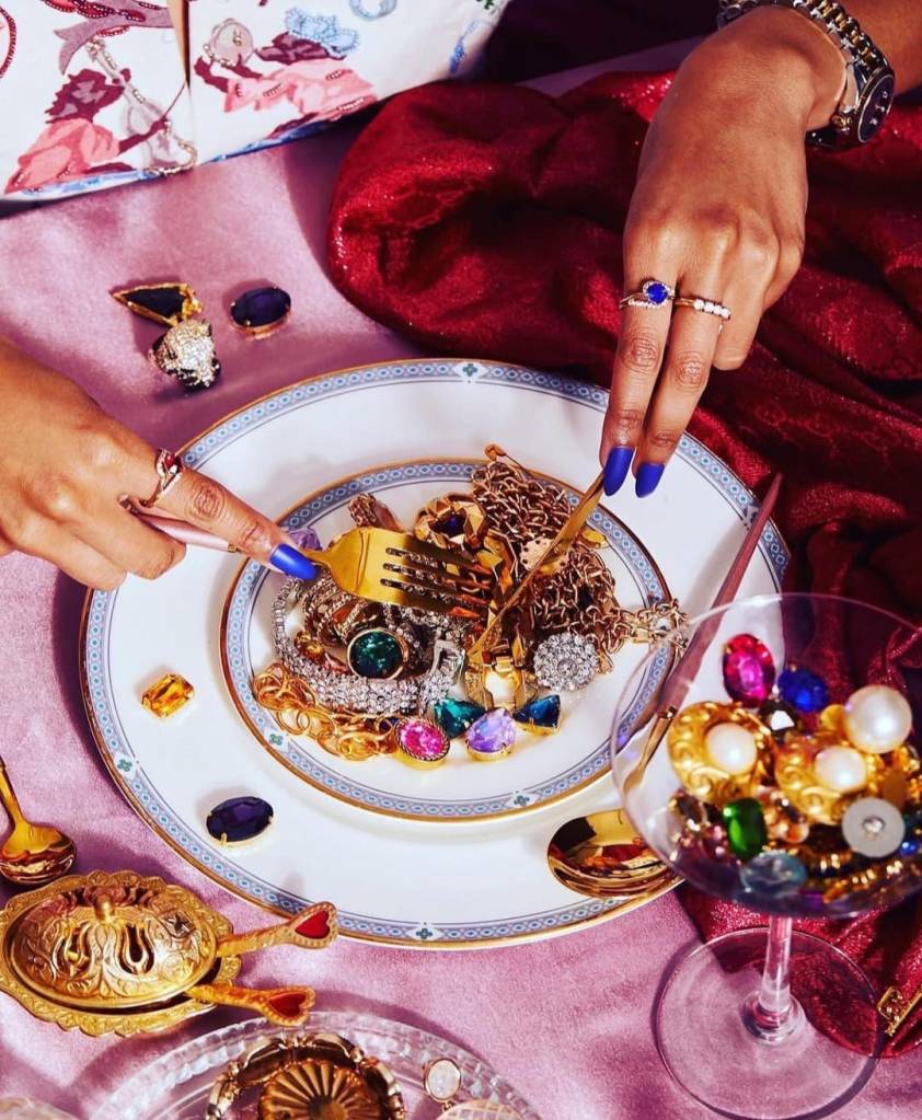 In what feels like a full-circle moment for me, I read Charles’ words in which he first introduced me to her: “I’ve never met someone like her before. I’d love to see the world the way she does. She sees the beauty in the most everyday things, and she is such an amazing person who really elevated my career.” I also mention some images I found from her portfolio that captivated me instantly: A jelly-gugelhupf made of a layer of baked beans, peas, whipped cream and a strawberry on top, a bejewelled cleaning bottle and Swarovski crystal-clad pink eggs (“You don’t realize till you start putting little crystals on an egg, how much space is on a boiled egg! It took me days to do it!”) – Kate has the ability to turn everyday items into something extraordinary.