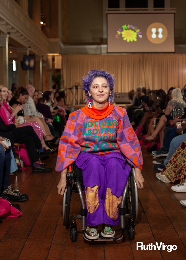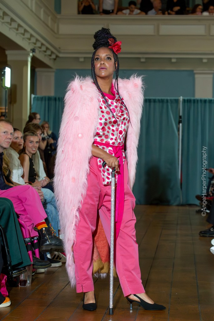 Subsequently, in a bigger venue, and featured on the official London Fashion Week calendar, Bullock Inclusion CIC presented its second fully inclusive fashion show, to prove that fashion isn’t just for everybody, but also that bodies with visible and invisible disabilities belong on catwalks, in fashion editorials and the mainstream media.