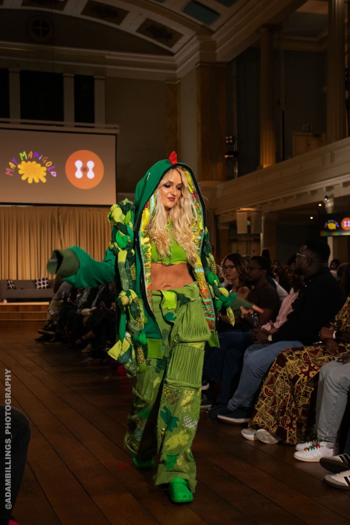 As with the first Future of Fashion Show, the involvement of students and their creation of adaptable and inclusive fashion was central to Samanta Bullock’s mission. Zhuyi Xu, Christina Tang, Mirey Demircy, Yucheng Jia, Yu and Huili Kim from the Royal College of Art and Hanna Smith from Central Saint Martins showed their art exclusively created for this fashion event.