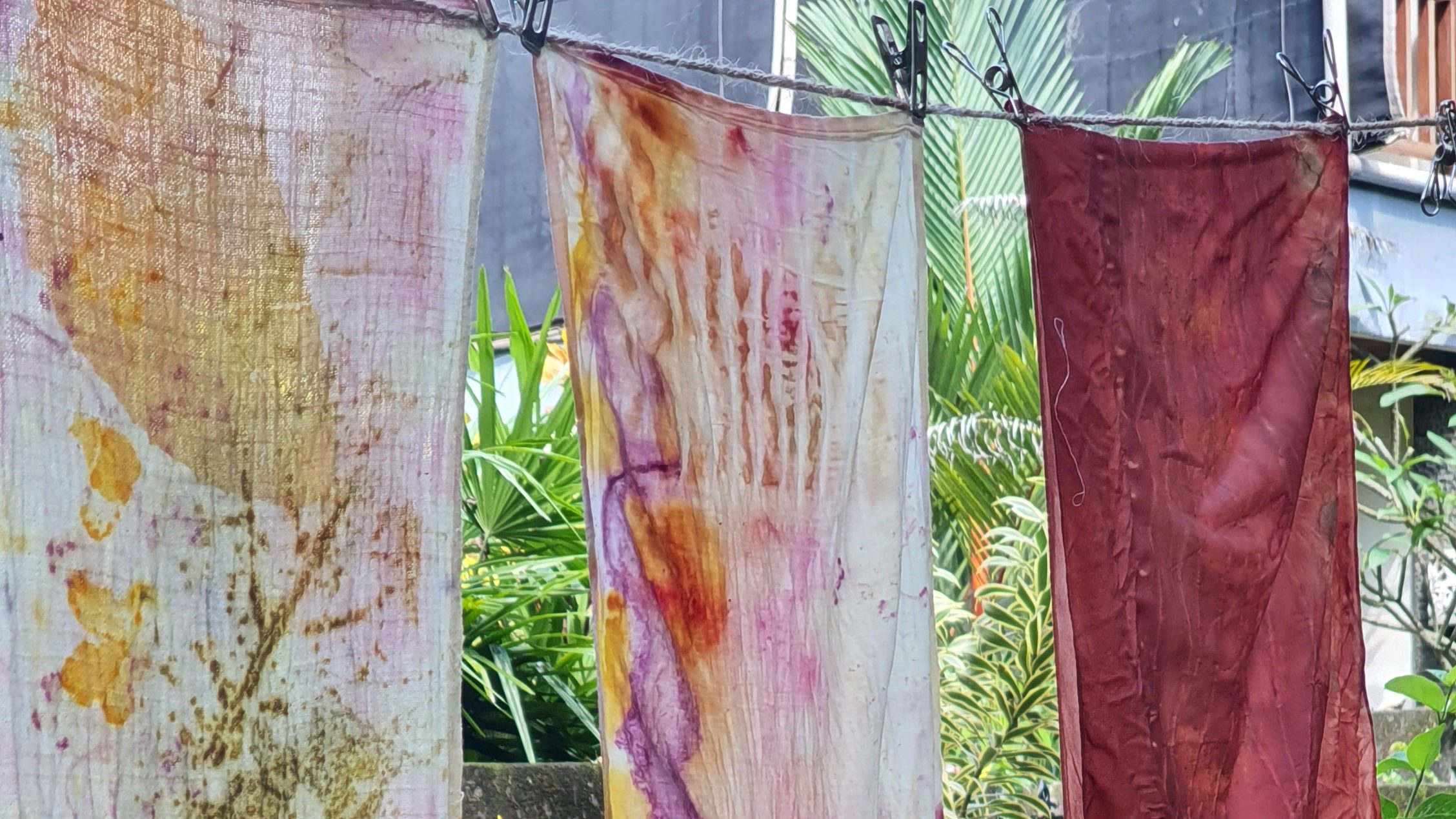 In recent years, that pull toward the physical world has deepened through eco-printing, natural dyeing, foraging, and gardening. Plants are collaborators. “When I use plants for eco-printing, it’s like they reveal their aura,” she says. “They share their story through the prints.” The same instinct led her toward sound healing and, eventually, to the crystal harp.