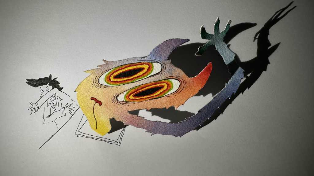 What emerged was something he would eventually call ‘Illustrated Cinema’, a technique closer to drawings coming to life than to classical animation. Paper, scissors, glue, watercolours. Handmade. Rough textures. Visible brushstrokes. Everything the modern viewer’s eye has been trained not to expect in an era of digital polish.