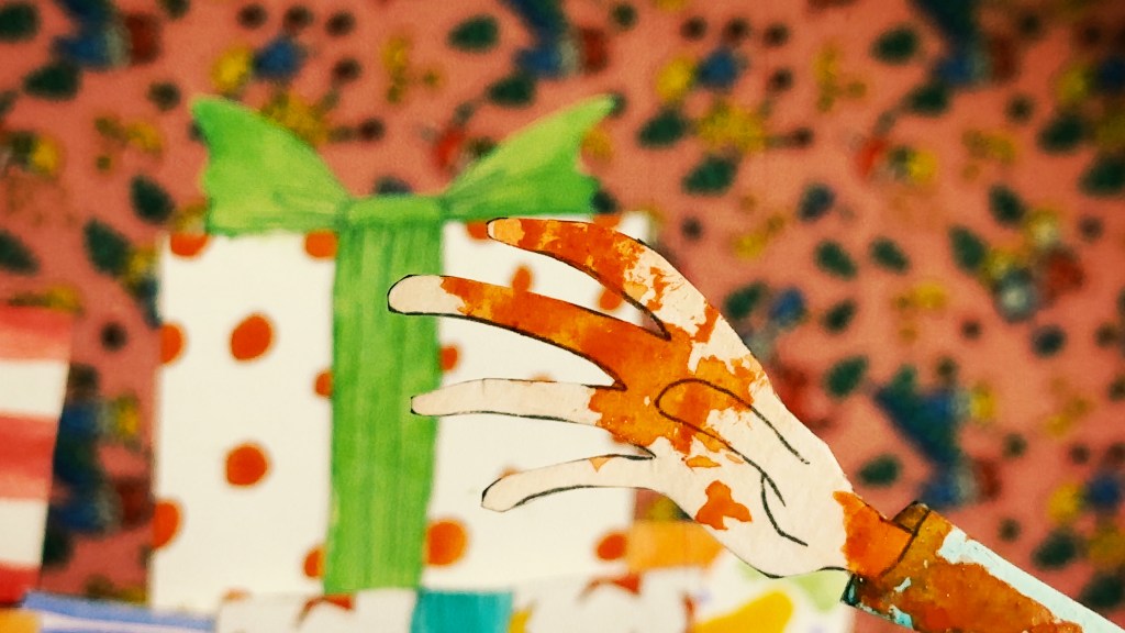 The gingerbread-man is screaming. His paper body is mangled, painted blood seeping across the frame while ‘Hark the Herald Angels Sing’ plays somewhere in the distance. I should laugh. It’s absurd, childish even. I don’t. I can’t.