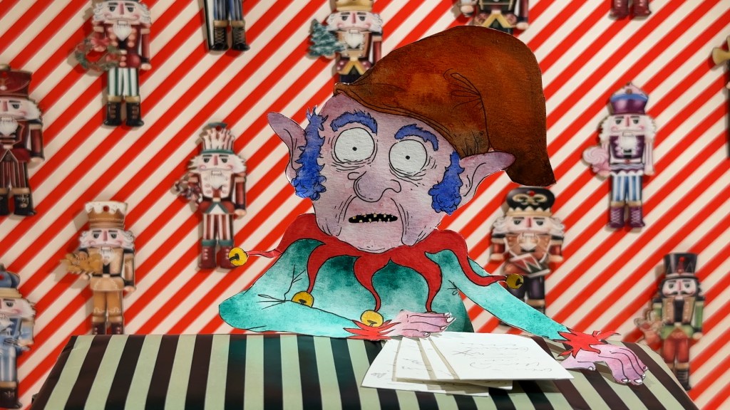 Santa’s Helpers’ Troubled XMas, an animated series, began, improbably, as an advent calendar. Thirteen years ago, on the evening of December 1st, Matteo had a sudden idea. He spent the rest of the month painting watercolours. One each day. Twenty-four illustrations, each depicting one of Santa’s little helpers being gruesomely killed by an inanimate, Christmas-themed object. As December 24th approached, the splatter level increased.