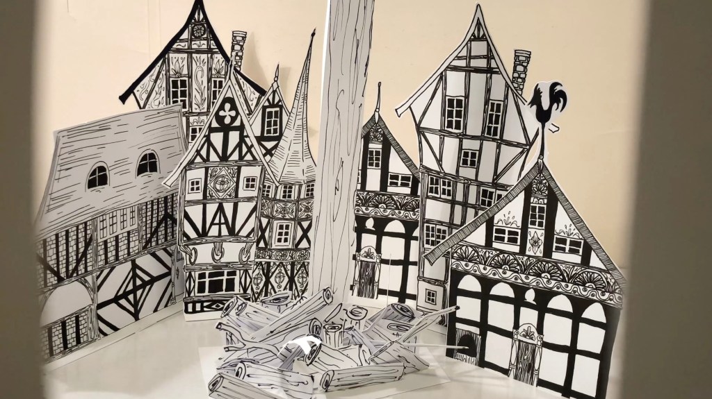 His ‘Illustrated Cinema’, paper theatres, watercolours, fairy-tales, gingerbread-men, made me writhe uncomfortably in my seat. It made my childhood erupt before my eyes in the midst of pure grief and personal vulnerability. It confounded me. Matteo has harnessed the very essence of why we are as we are. Our childhood. And he’s using it to show us who we’ve become.