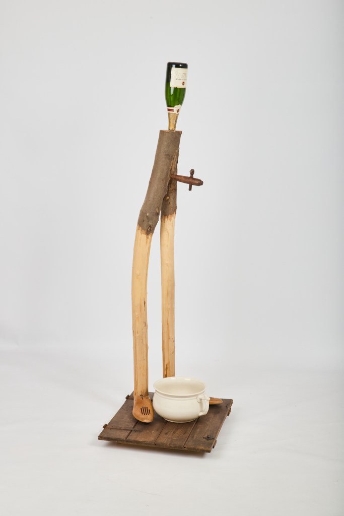 I ask Nicholas about materials and processes. “In the Garden of the Happy Dead includes many objects that died a long time ago and they’ve always been in my life”, Nicholas explains. He tells me that the first stick he ever fell in love with was a silver birch which he found while chopping firewood with his father. He refused to hand it over for the fire : “And that stick has lived on my shelf ever since, because sticks are cooler than any toy. They’re not defined as a thing. It’s a gift that nature’s giving you. And a stick is whatever you want it to be.”