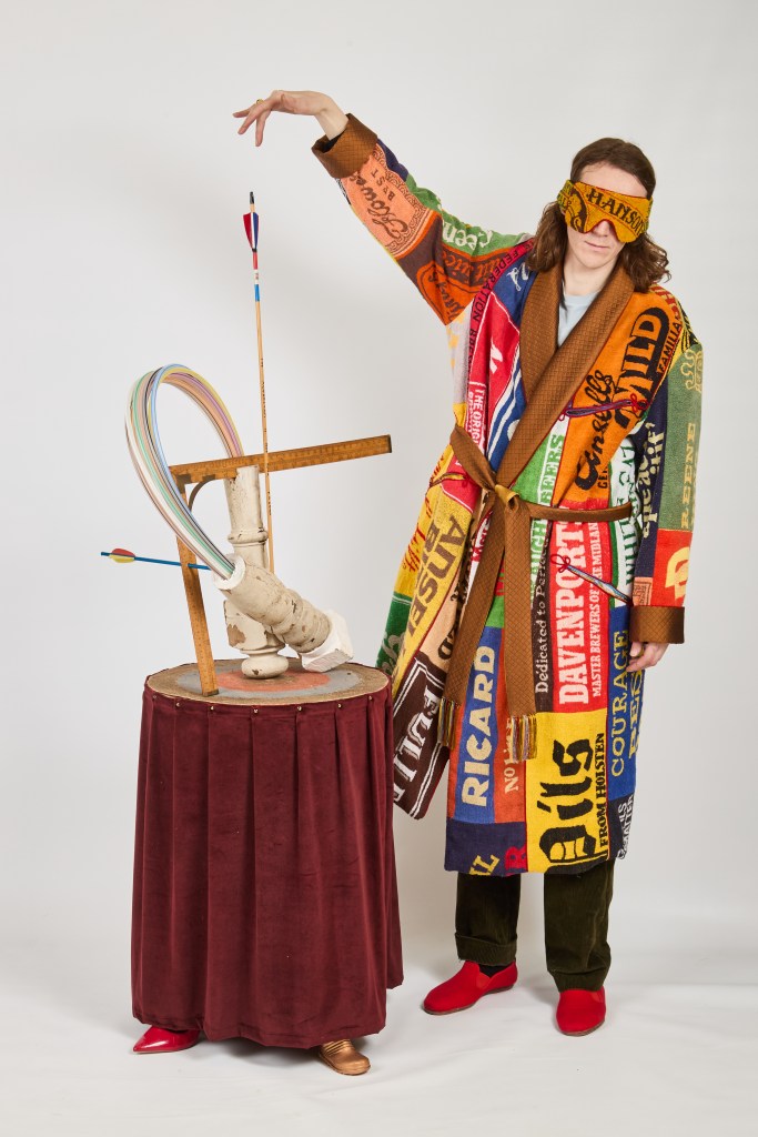 “I went to Abraham Moon & Sons; that’s the only vertical mill in England. They work with the shepherds, they get the raw wool, they wash it, they dye it, they spin it to yarn. And I worked on the factory floor, just lugging things around, cutting the cloth to order.” He also began collecting scrap cloth from the mill, something he does to this day. “Martin Aveyard, their old creative director, hooked me up with a lot of scrap cloth that was unviable for production, such as strike-offs and samples. From there he went to Newham for a bespoke tailoring apprenticeship, before heading to the Royal Academy of Fine Arts in Antwerp (2017-2019). “You have a two-day interview where you do painting, drawing, sketching and answer random questions. I got the highest mark out of 500 applicants. And they put everyone’s marks publicly on the wall! It’s like Harry Potter for fascists, it’s horrible.” He returned to the UK in 2018 to spend his father’s final months with him.