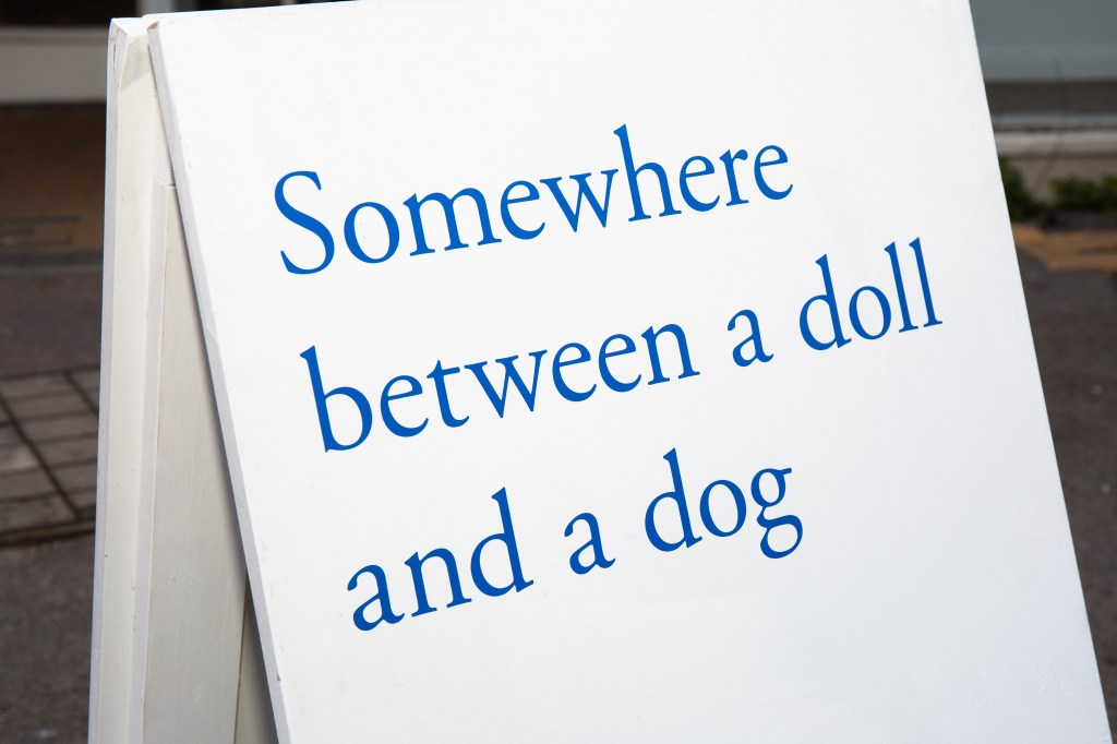 This is not incidental. Ezekiel chose it deliberately, with full knowledge of what that choice meant. Kent Council is run by Reform UK, a party that has made its hostility to immigrants and trans people not just policy but identity. To open Somewhere between a doll and a dog here, in this town, under this council, is not provocation for its own sake. It is something quieter and more defiant, the simple, radical act of existing fully in a place that would prefer you didn’t exist at all.